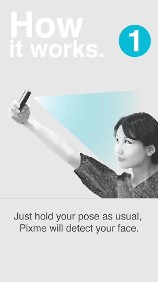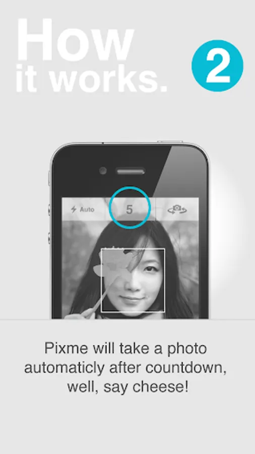 Just turn the camera to your cute face, Pixme will count down automatically.