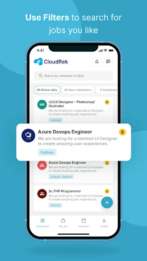 CloudRek is a hybrid job board and recruitment platform that allows job-seekers to find their dream job and clients to effectively find the best possible candidates at the lowest cost and effort. CloudRek recruiters use traditional recruitment methods to find the right candidates, and only the most fitting candidates are pushed into the CloudRek platform.