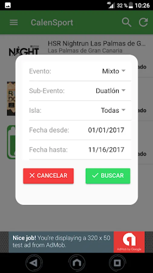 CalenSport is your app. Here you can get all the sporting events that you can participate as well, you'll find them by sport, mode, province, etc.