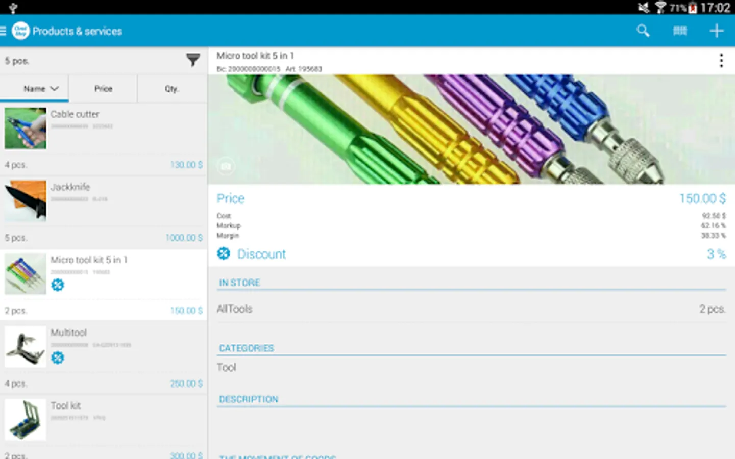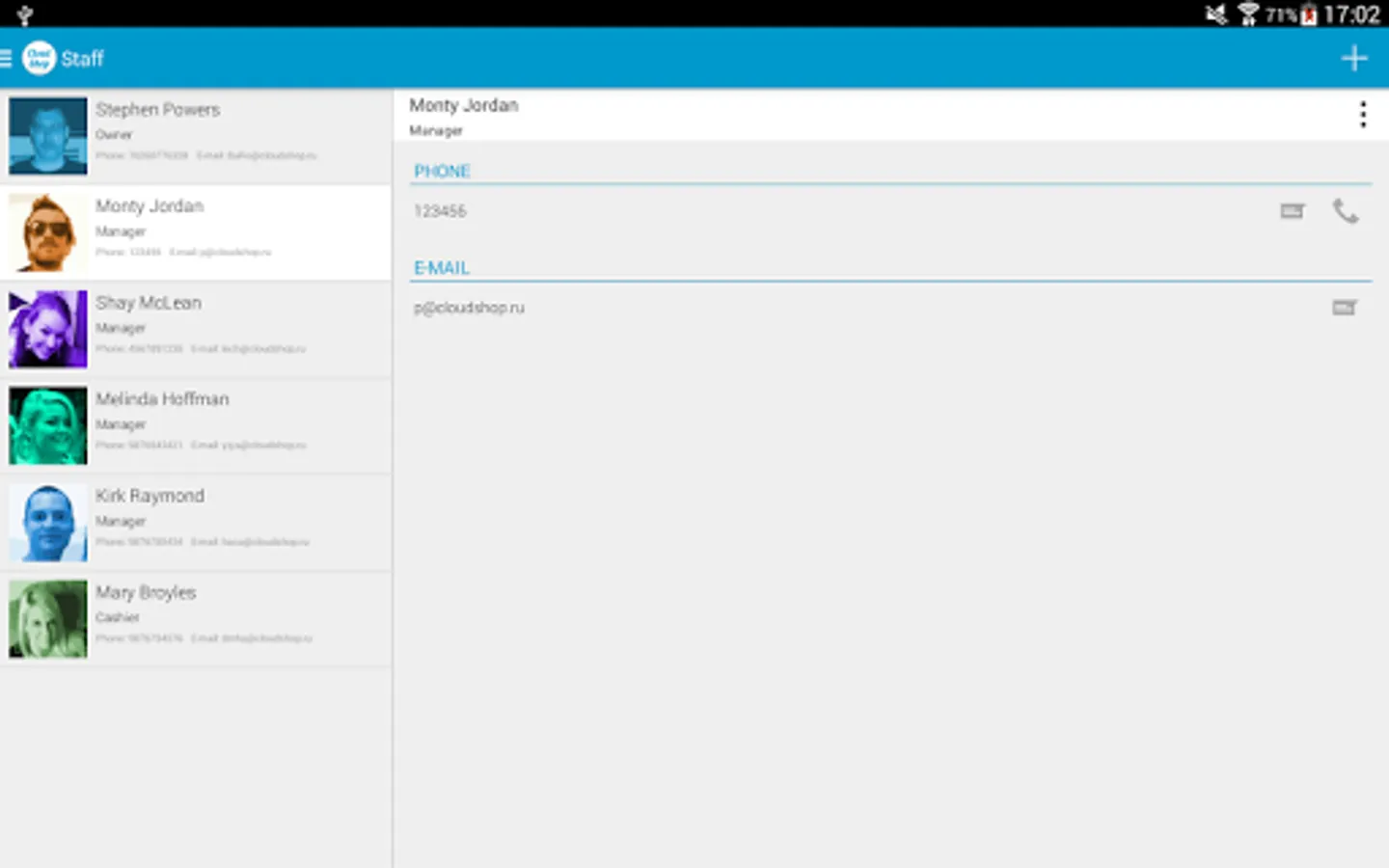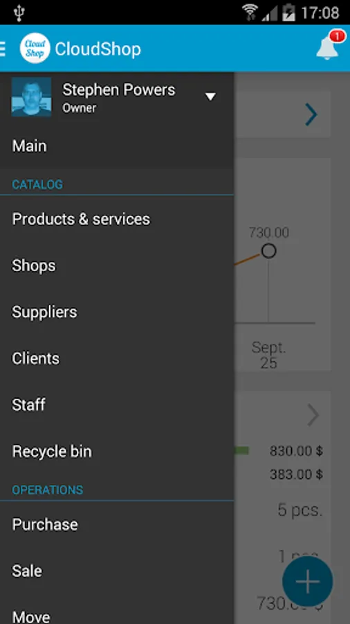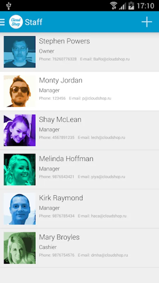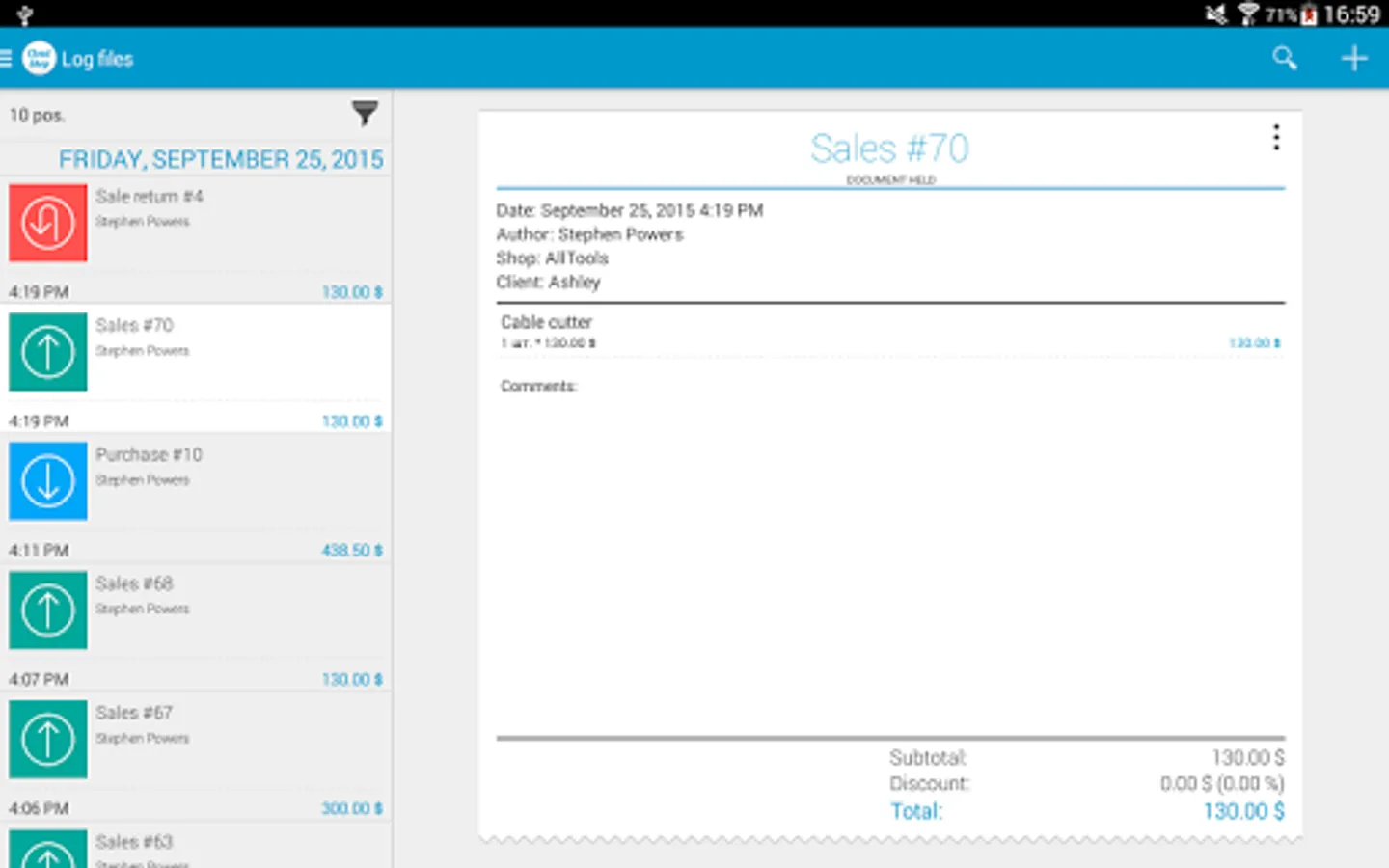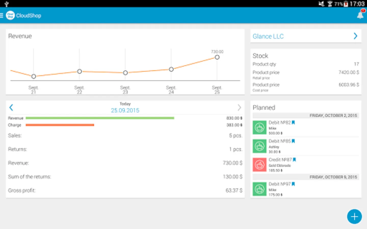 Manage your retail business with any number of store locations with global inventory control across all of them. List of shops, clients, employees and goods/services are always at hand on your mobile device.