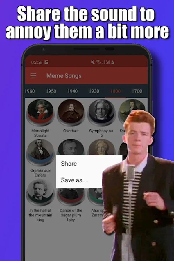 This Meme Song Evolution Soundboard features the funniest and most popular meme songs from the year 1700 to 2020.