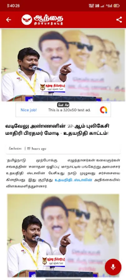 "Aanthai Reporter News app in Tamil: Real-time updates on local, national, and global news. Customizable feeds, multimedia, and breaking news alerts for informed readers in Tamil.