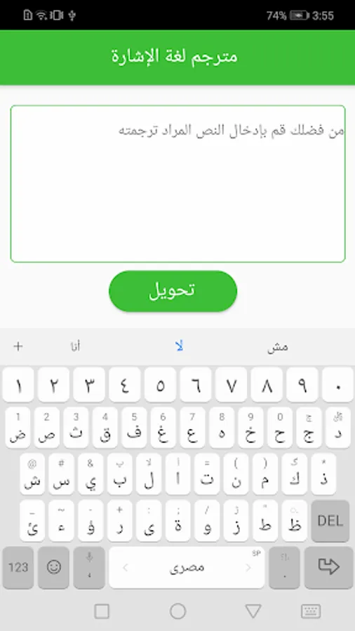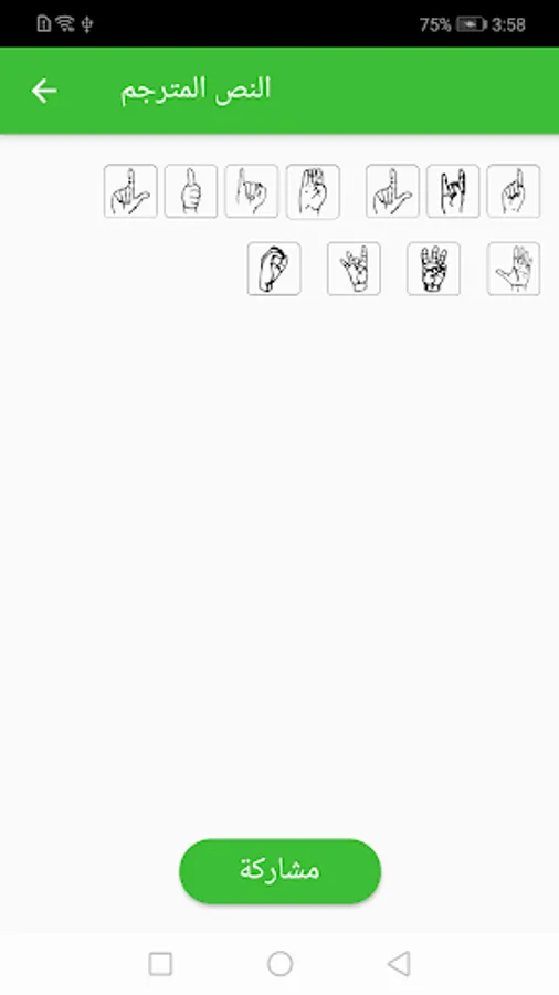 تطبيق يقوم بمساعدتك في تحويل الكلمات العربية الي لغة الاشارة ومن ثم إرسالها ومشاركتها علي منصات التواصل