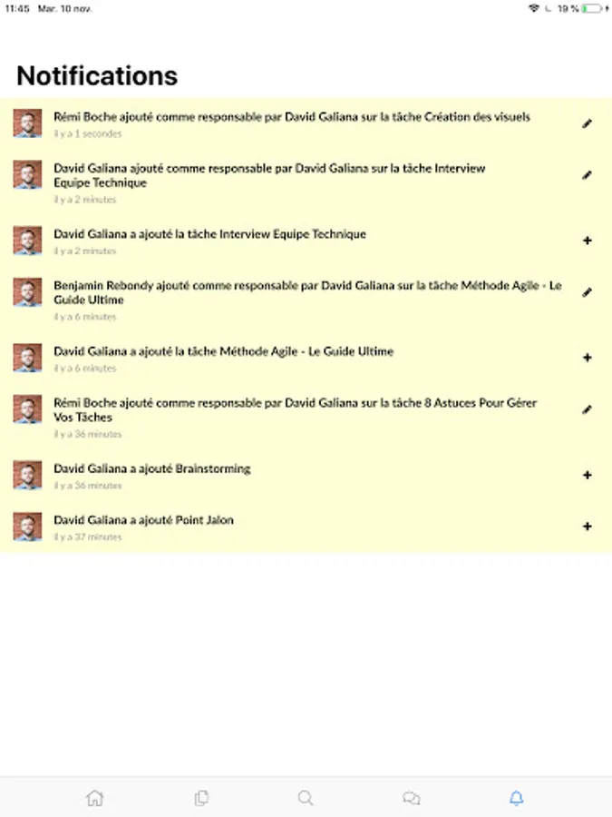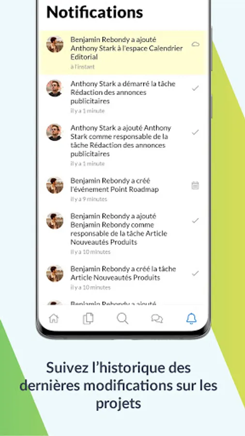 • Notifications: Follow at a glance the latest actions and updates carried out on the projects in which you participate.