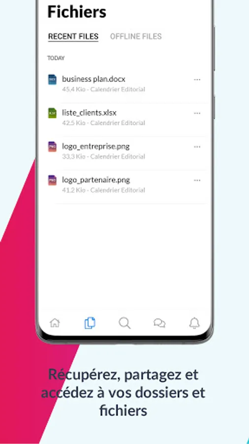 • Quick search: find a specific file, task, event or message at the touch of a button.