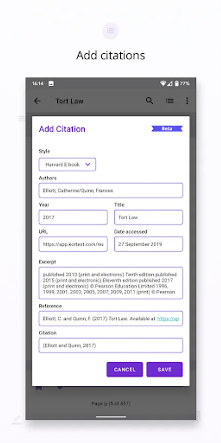 - Add a reference (Harvard or APA), making creation of bibliographies much easier