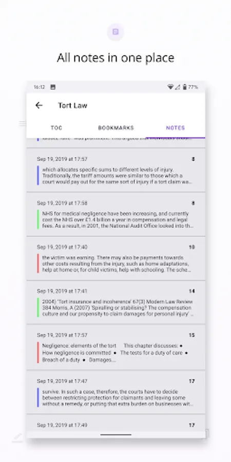 - Highlight extracts in a range of colours, enabling quick reference of key sections