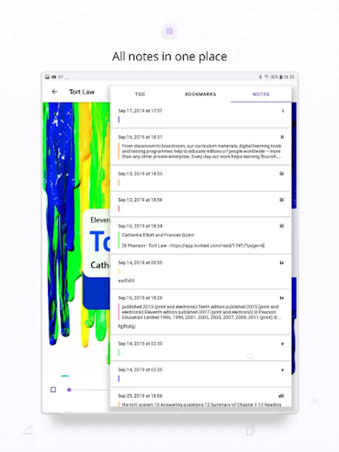 - Add notes to content and share via email or OneNote, allowing notes from different books to be collated in one area