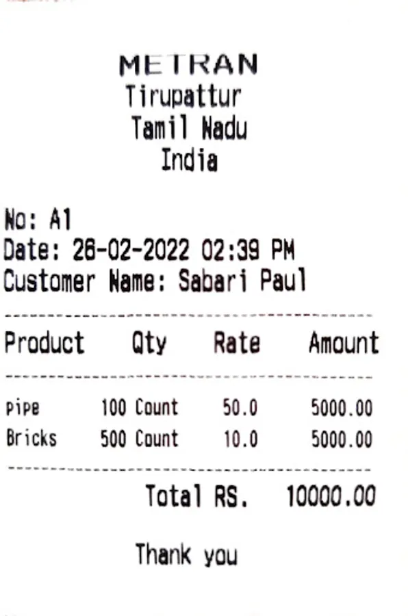 * Supports bluetooth printing for billing & mini-statement of customer transactions.