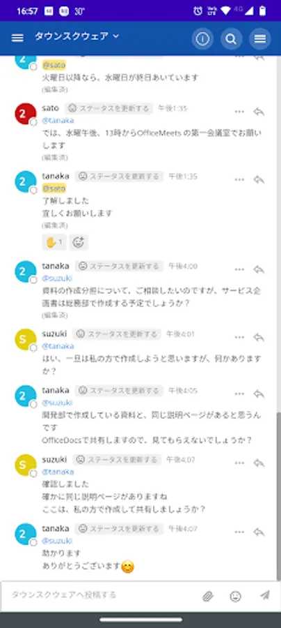 It is also excellent for attaching files and images, content that should be made known to multiple people, and when there is a high degree of urgency, and has the advantage of being able to draw conclusions faster than communicating by email.