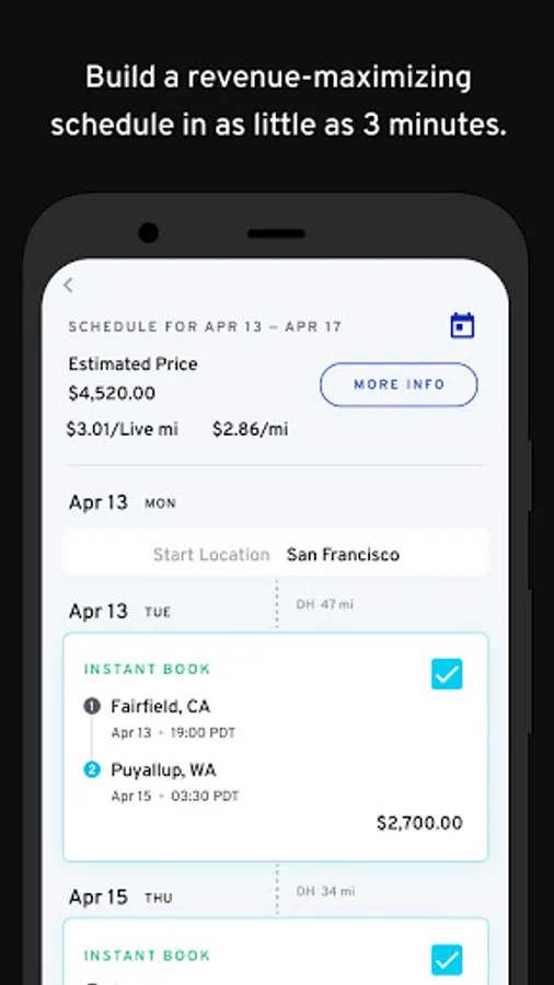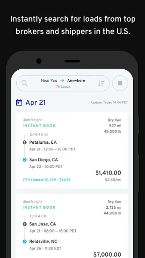 Dispatch - Users are able to search for loads from top brokers and shippers around the country, get the best recommendations and book all in the app without needing to call a broker.