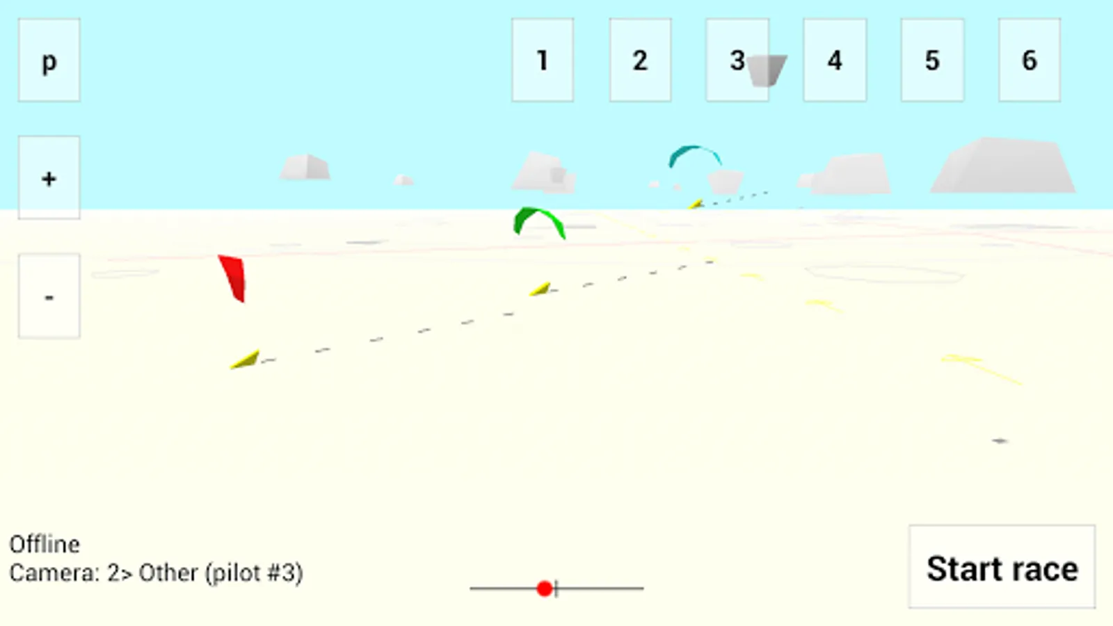 Important thing to note is that once all players that joined particular race (glider type + task) tap 'Start' race starts and although other players can enter they cannot join the race until all racers are on the ground again. Anyway, they can watch the race from perspective of other players (tap number 2 to move camera between racers).