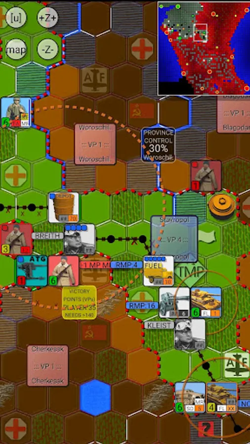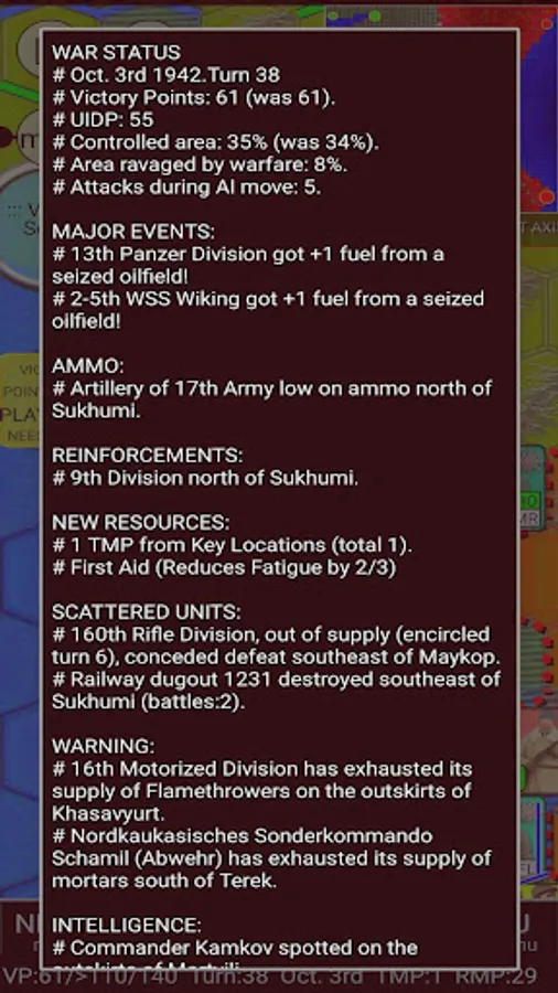 On the plus side, the people of the Caucasus Mountains are ready to rely on your advance and launch an insurrection with guerilla forces supported by the German military-intelligence service Abwehr.