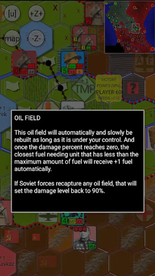 How the oilfields on the map operate. After German units seize an oilfield, it starts to be rebuilt. Once the rebuilding process has been finished, the oilfield will automatically give +1 fuel to the closest fuel-needing Axis unit.
