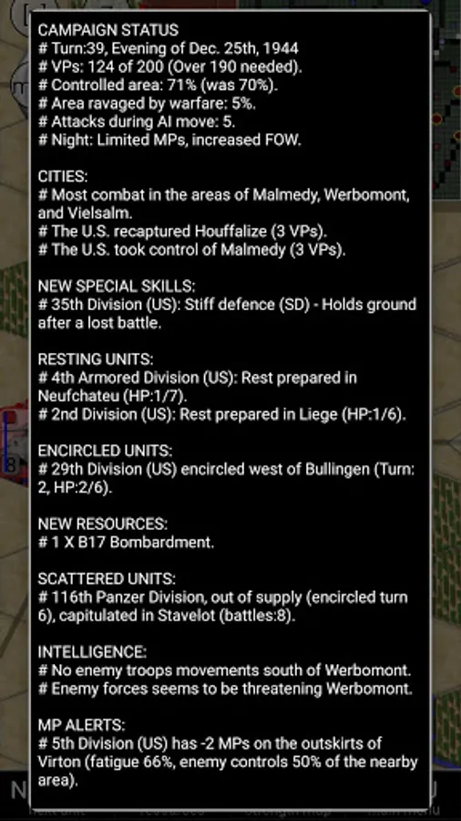 + Historical accuracy: Campaign mirrors the historical setup, and uses the names and locations of the divisions that saw combat during the Battle of the Bulge in World War II.