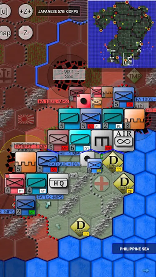 This is turn-limited version of Allied WWII Invasion of Japan 1945, a strategy game set on the Pacific theater during the Second World War. This was a planned operation that was not carried out.