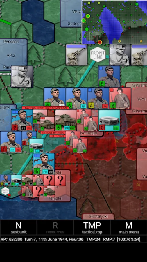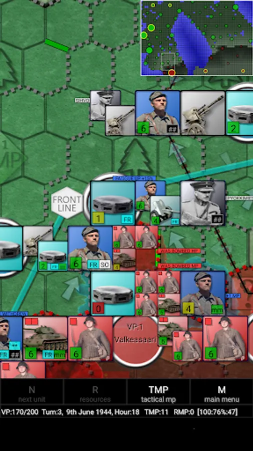 Can you lead the Finnish forces brilliantly enough to stop the massive Red Army offensive which aimed to knock Finland out of the Second World War? The years 1942-1944 were quiet on the Finnish part of the Eastern Front: Soldiers did wood whittling, few saw combat, wrong places of the front line were fortified -- all this while Red army was taking lessons in modern warfare from Wehrmacht. When the Soviet strike finally fell in the summer of 1944, it was a huge well practiced attack by a thoroughly trained army with unprecedented artillery barrages - against Finns who had just extended summer holiday leaves. Game ends when you either control all the Victory Points or after you have lost control of all the VPs (you held on as long as possible).