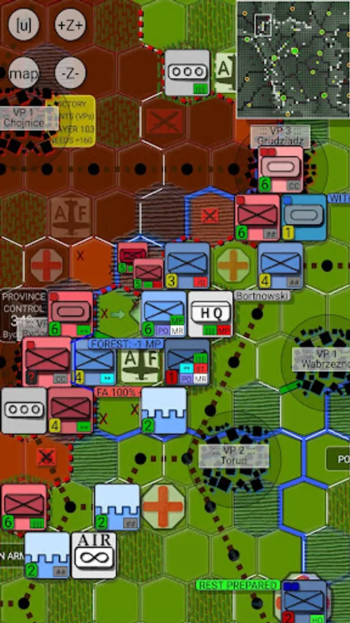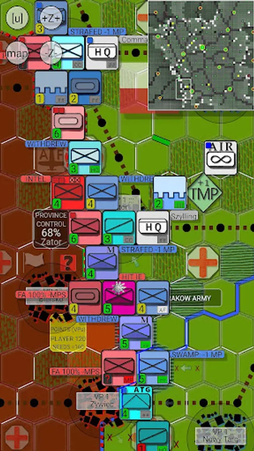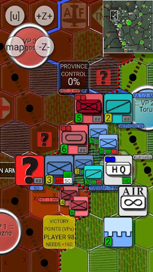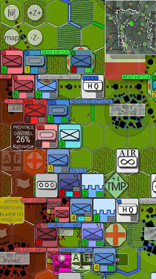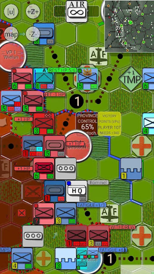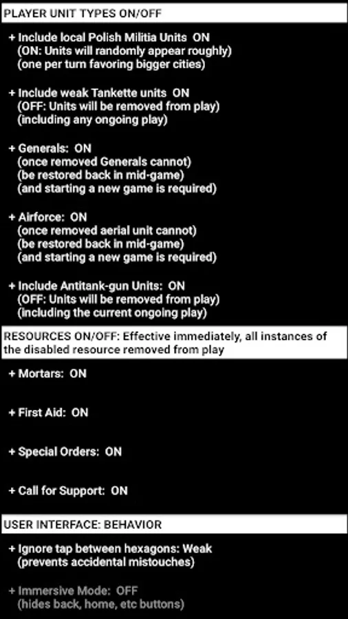 + Settings: An endless list of options are available to alter the look of the gaming experience: Change difficulty level, hexagon size, Animation speed, choose icon set for units (NATO or REAL) and cities (Round, Shield, Square, block of houses), decide what is drawn on the map, turn off unit types and resources, and much more.