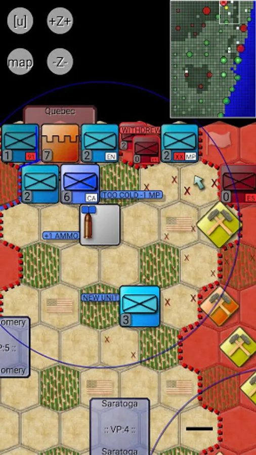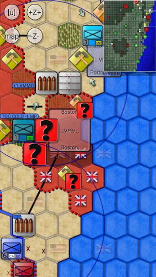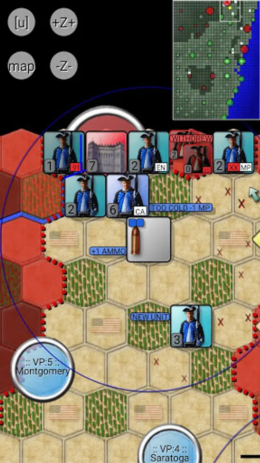 Cities provide supply to units, while plantations provide gold, which is needed for various purchases. New militia units can be formed from Minutemen locations still under your control. Any attacking unit needs to be located nearby a movable ammo depot, which can be created from armories.