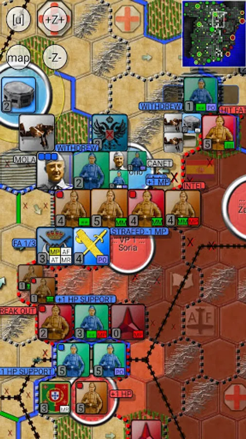Can you navigate the chaotic and dispersed setup of your forces (from weak under strength Militia to battle-hardened Army of Africa) to consolidate enough area under your control to entice more support from abroad to continue the struggle for the full control of Spain?