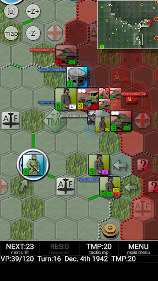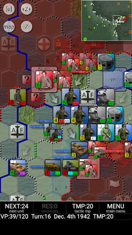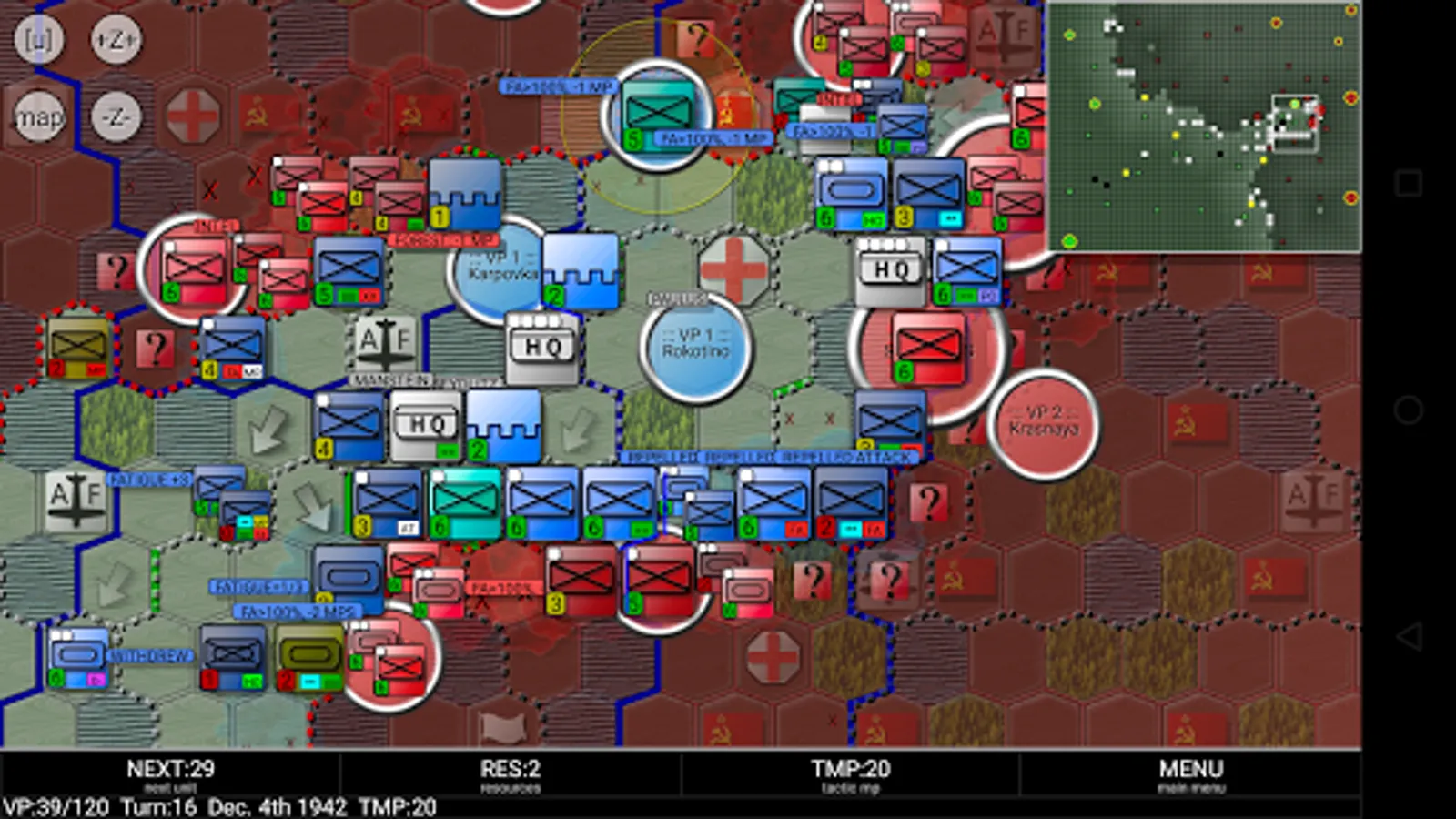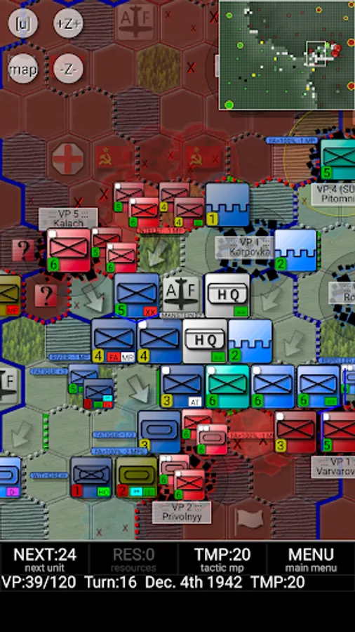 You are in command of the Axis forces when the Red Army launches Operation Uranus - The encirclement of the German 6th Army located in the Stalingrad Area. The object of the game is to hold the collapsing front line and gather enough troops for a counter-strike to free the 6th Army, and then using the freed forces control the entire area of the map. Failing that, your score will be the number of turns you managed to hold on before collapsing to zero VPs.