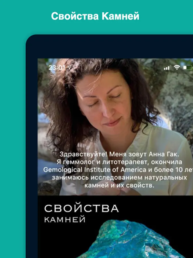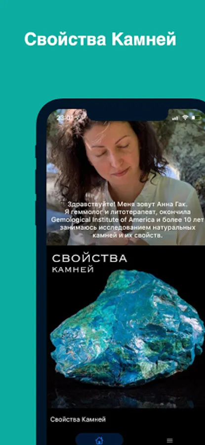This application is for those who sincerely love stones and feel their special connection with them. Inside you will find a selection of materials and one of the world's best lithotherapists and stone specialists Anna Gack.