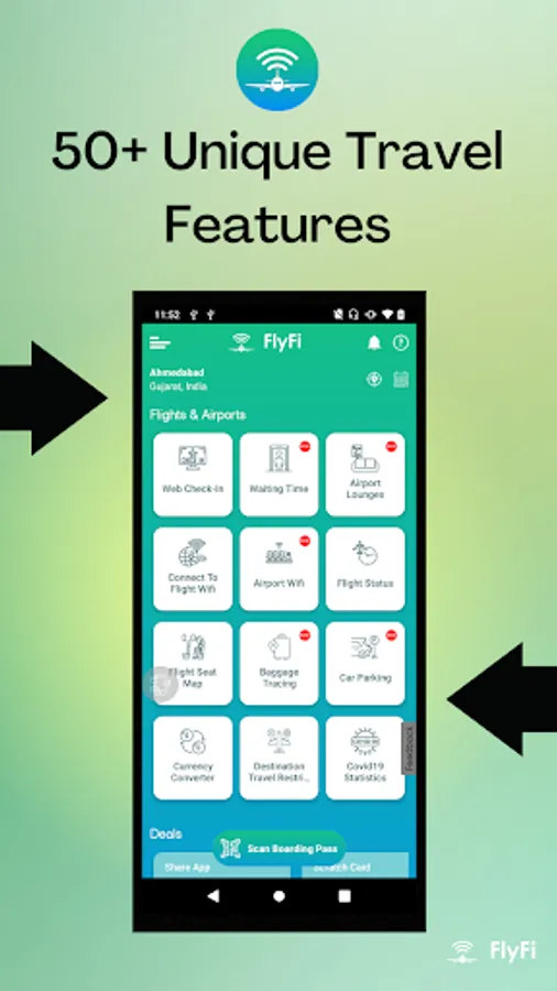 From boarding your flight to the arrival at your destination city, FlyFi assists through the whole process and makes sure you are notified of the latest updates on your travel.