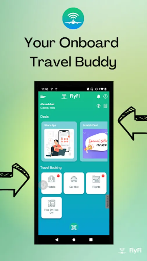 FlyFi is your onboard travel buddy. It helps you have a hassle-free travel experience.