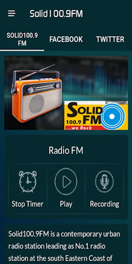 Solid100.9FM is a contemporary urban radio station leading as No.1 radio station at the south Eastern Coast of Nigeria and its adjoining states. we transmits nineteen solid hours at the highest hill above the sea level located at Agu Abor hills Enugu state. solid fm rocks in good Music, Sports, Entertainment, News, Politics & human angle issues. SOLID100.9FM boasts of an impressive list of young creative OAPs that keeps you up to date with the news you need, music you want and the information you deserve, solid fm would rock your mind....... Keeps your days memorable ....... solid 100.9fm.... We Rock!!!