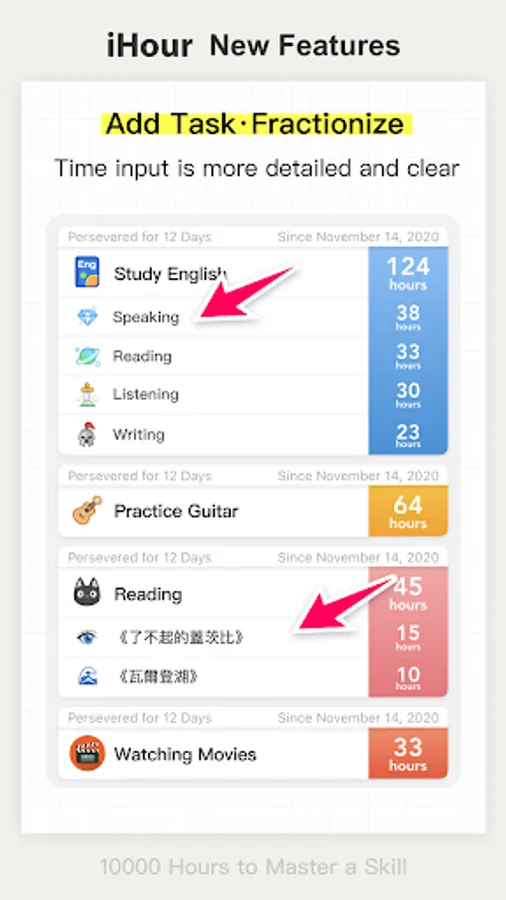 The app supports daily reminder, countdown timer, up to 10 years long-term planning. Special designed Achievements help you achieve your goal.