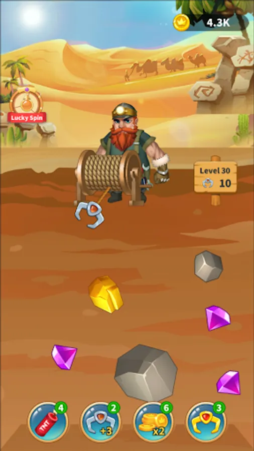 - Tap the screen and release at the right time for the hook to grab various underground mines.