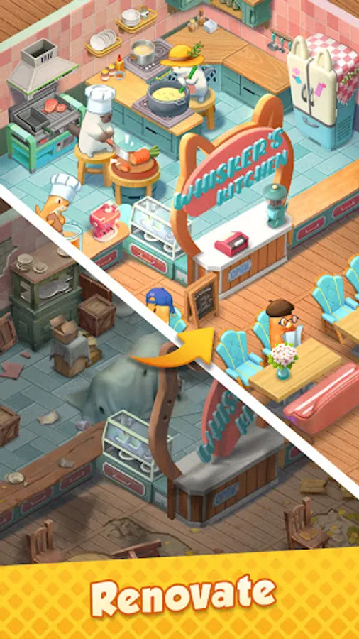 Players need to synthesize various raw materials to make different flavors of food and help the cats provide delicious meals for their customers. The cats are busy shuttling around the restaurant, greeting guests, and serving dishes, bringing players endless fun.