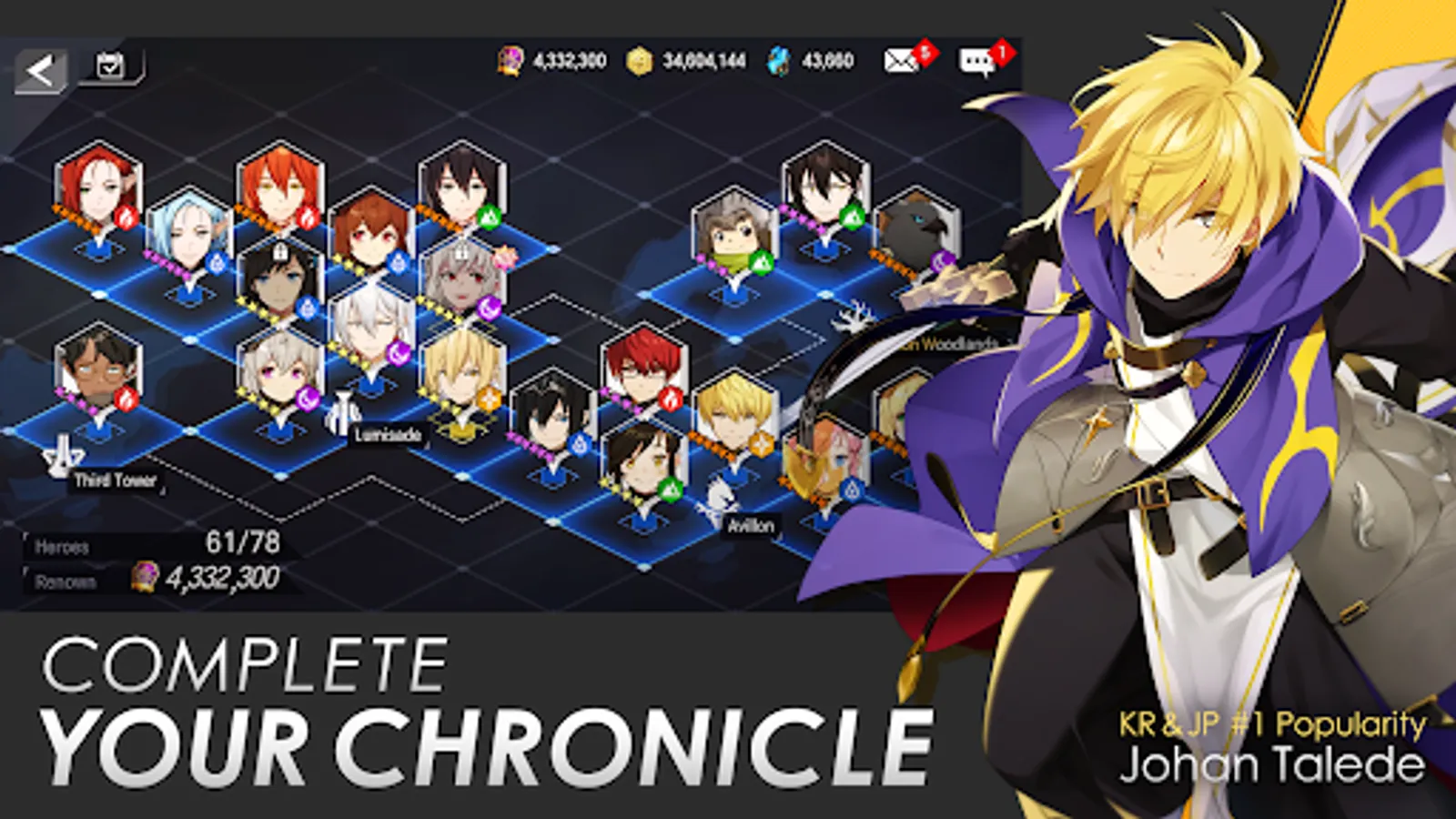 As the Lord of Avillon, you'll embark on a gripping journey filled with trials, triumphs, reunions, and farewells. Explore the human experience through themes of sacrifice, loyalty, and the weight of leadership. Traverse various chapters of the main story, uncovering the intricacies of this mystical world. Delve into the past of your heroes during the War of the Tyrants story, and embark on new adventures with Side Stories in the ultimate RPG experience.