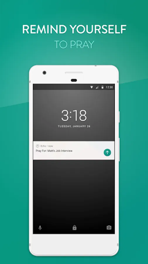 Echo gives you the ability to "Pray Now" which gives you a clear, focused way to pray. Choose what you would like to pray for and optionally set a timer for how long you want to pray.