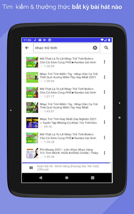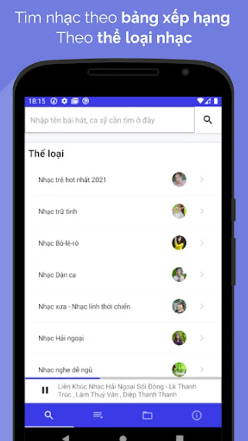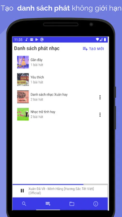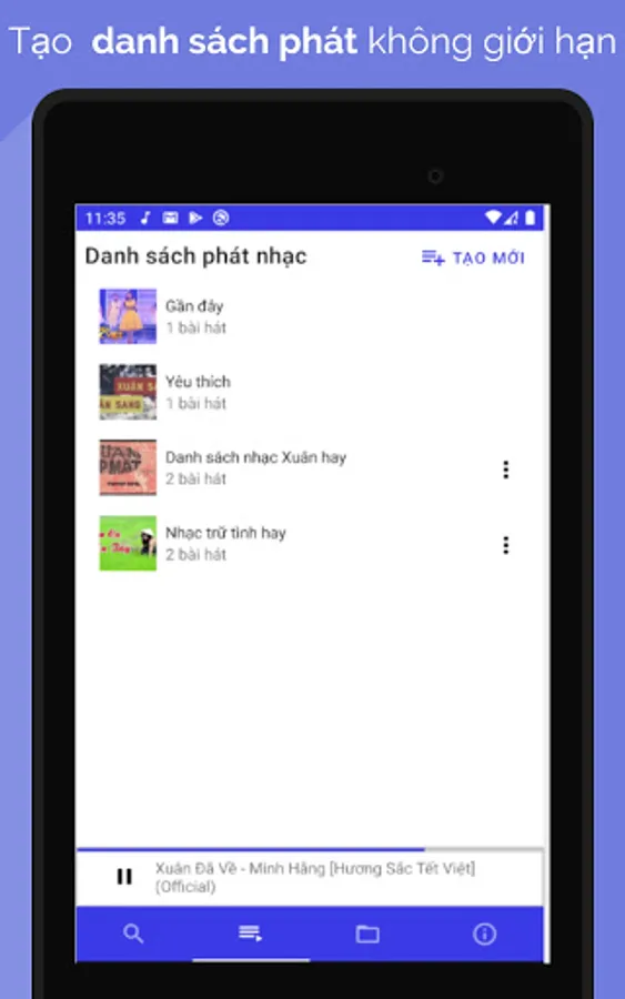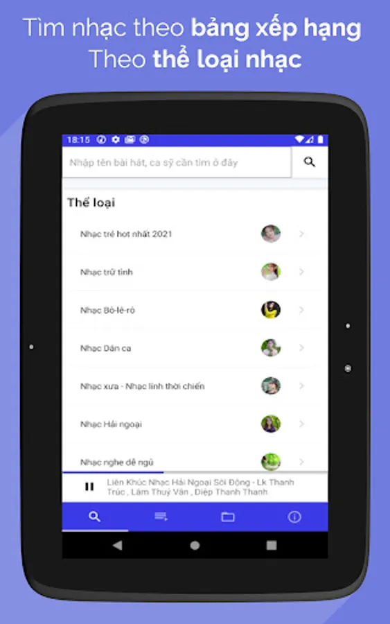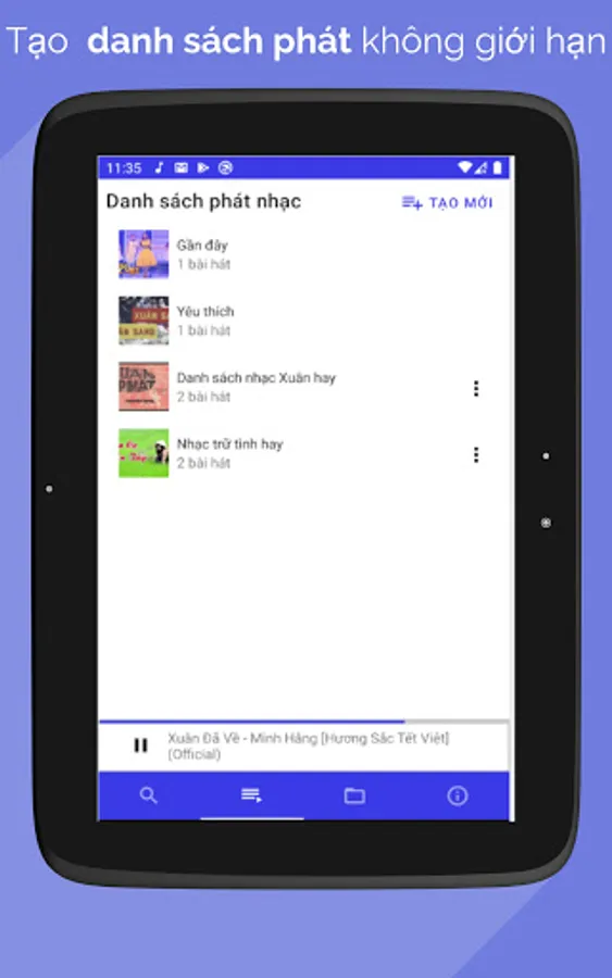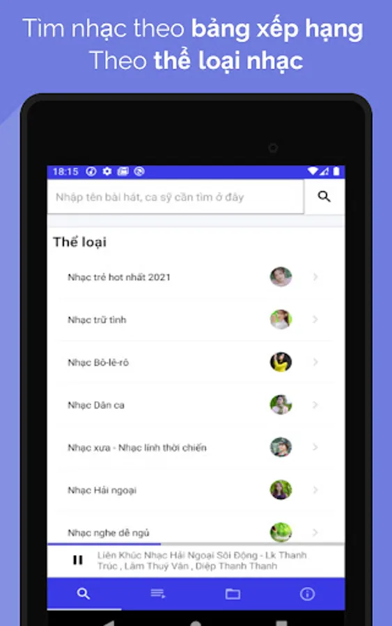 Music player application Listen to music allows listening to mp3 music online, listening to music off the screen and still listening or listening to mp3 music available on the memory card, searching for music by many genres of music, audio books like famous music applications in Viet Nam.