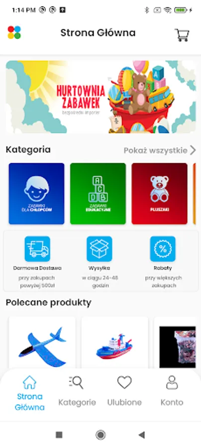 Aplikacja hurtowni zabawek Clown.pl. kupuj tanio, szybko i hurtowo nasze produkty przez aplikację mobilną. Oferujemy liczne rabaty i promocje dla stałych klientów.