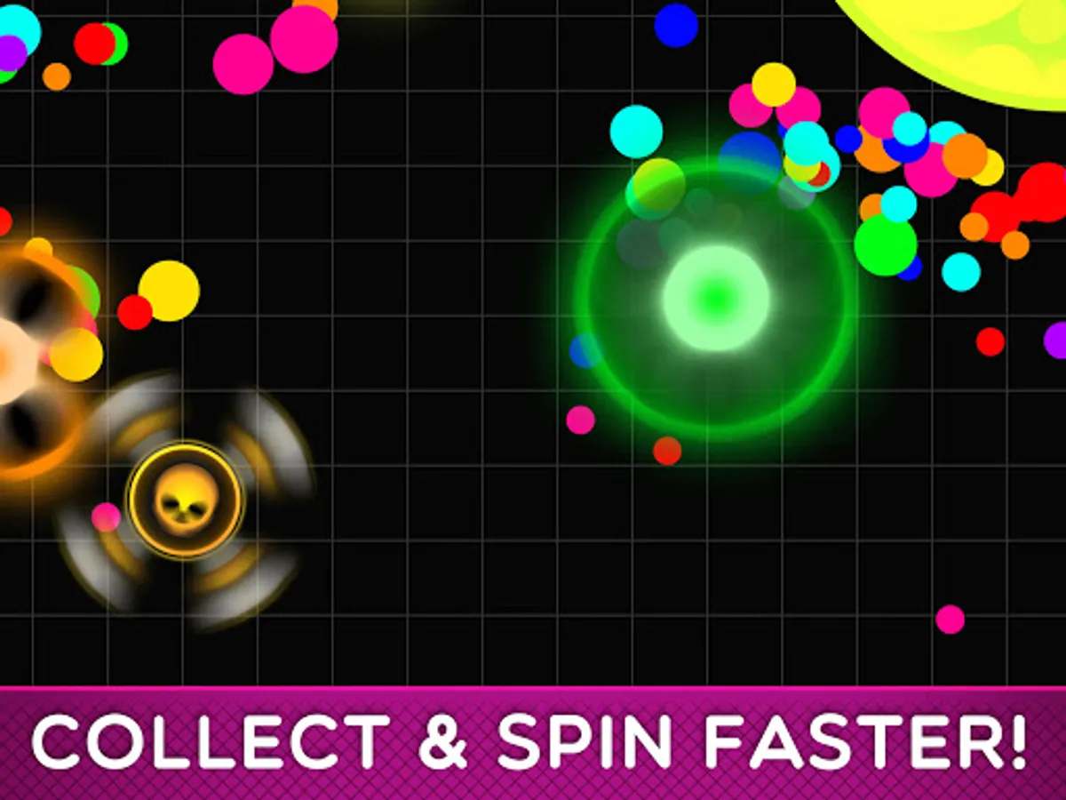 Collect dots to spin faster, become the fastest spinner in the arena and crash others!