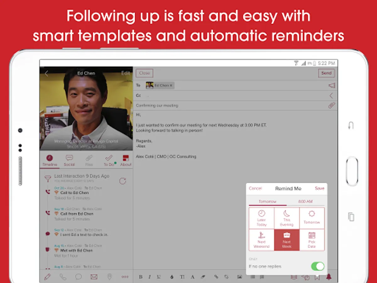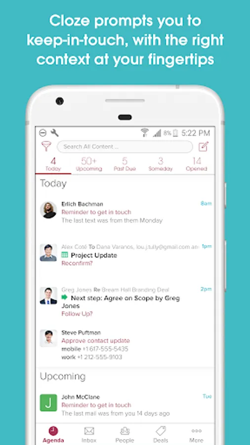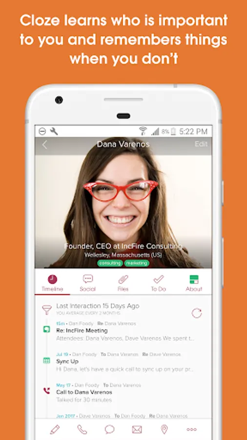 Cloze is like a personal assistant for your professional relationships that is always prompting you at the right moment and remembering what you don’t.