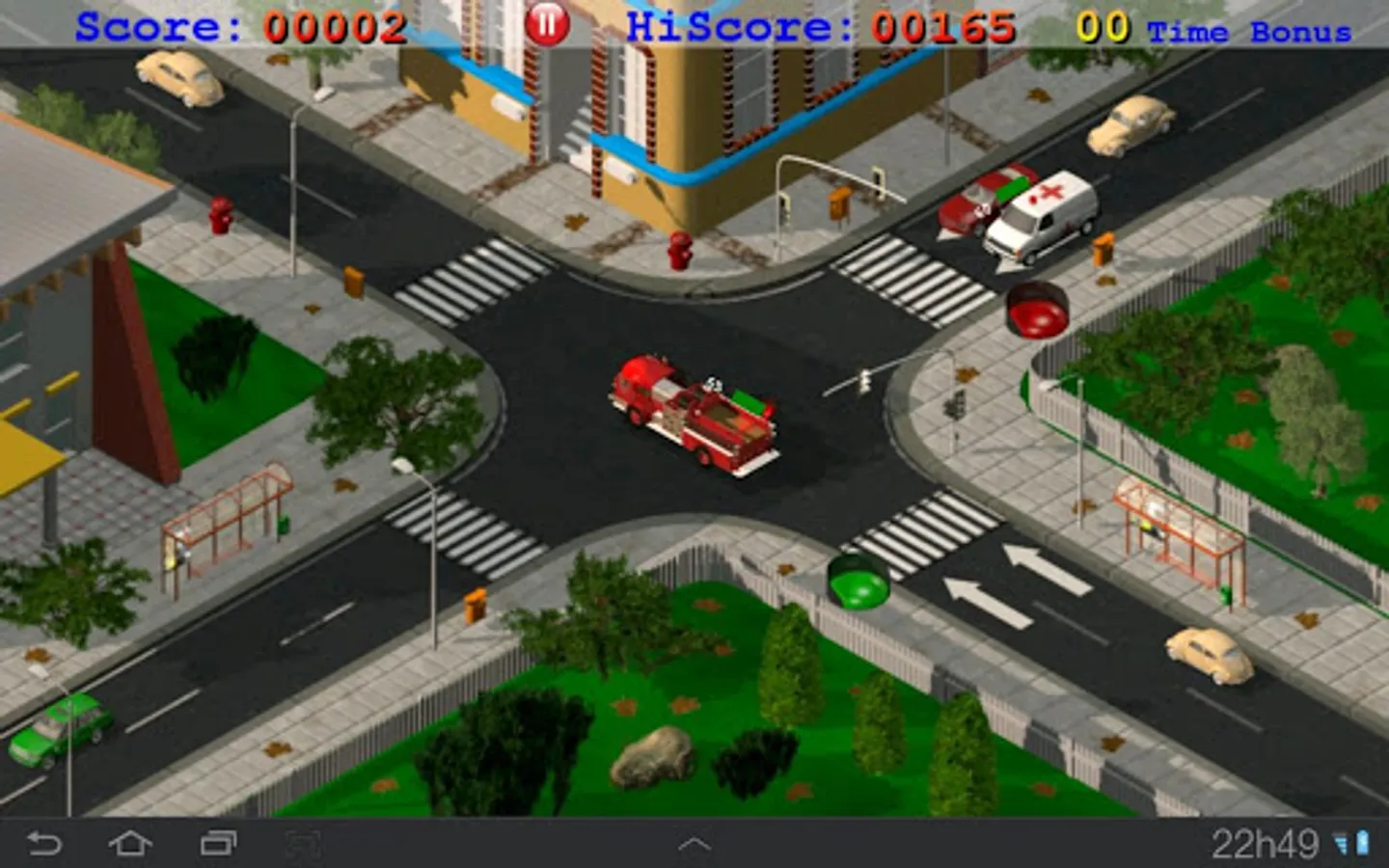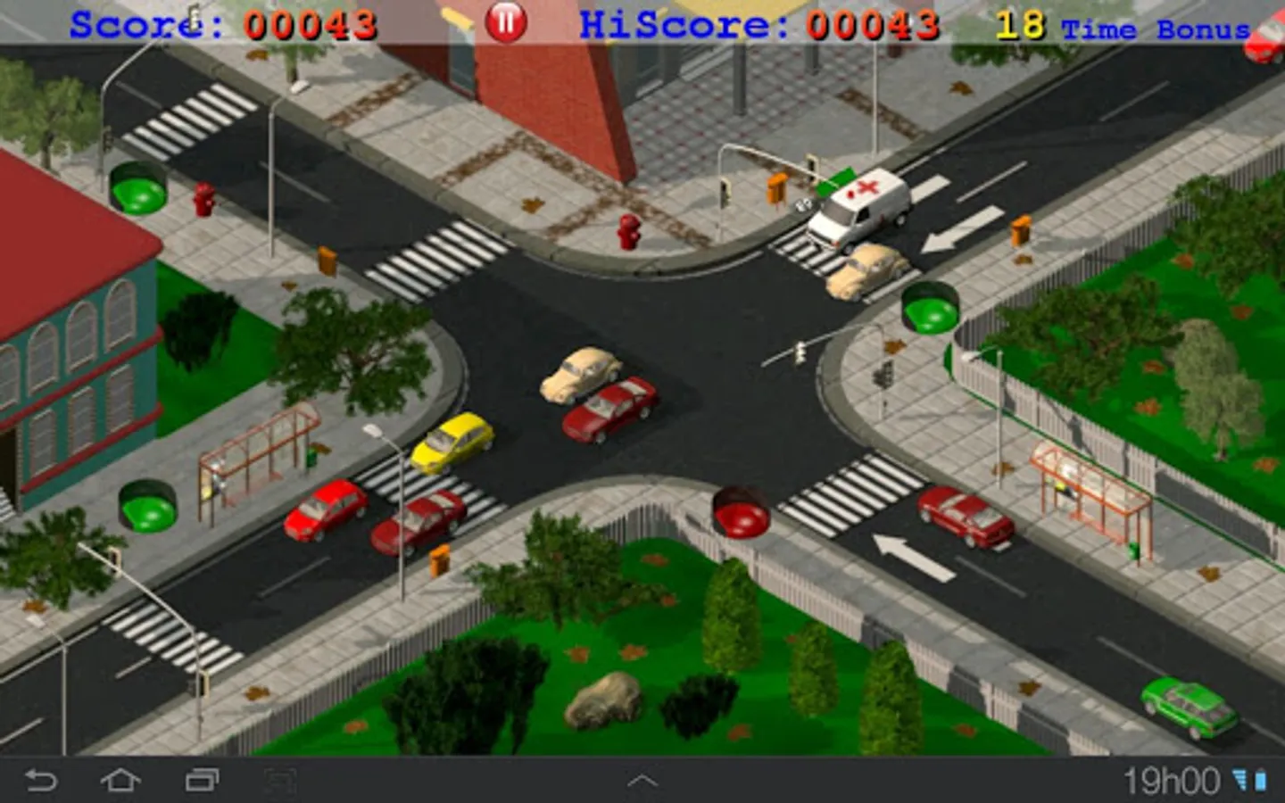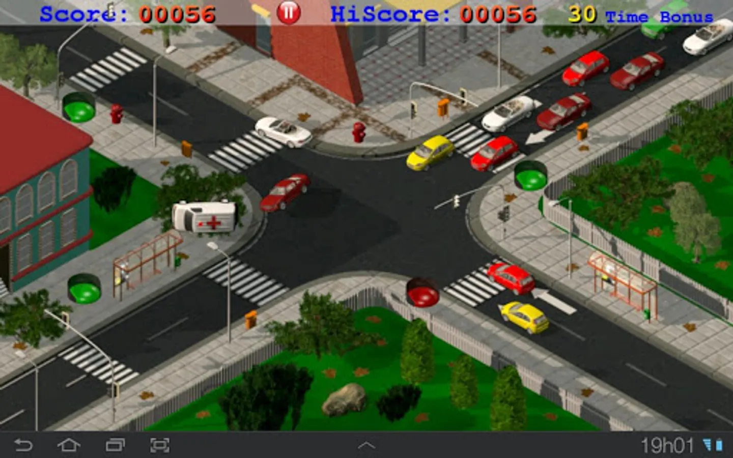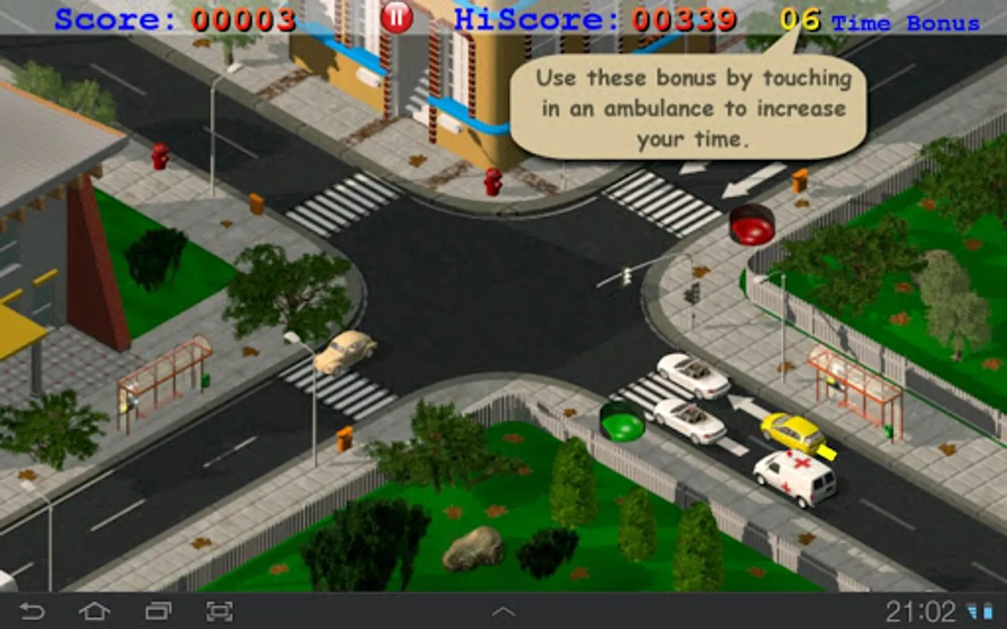 Each emergency car cross the intersection will give you 6 bonus points to be used to increase the time. (touch the emergency car to add time).
