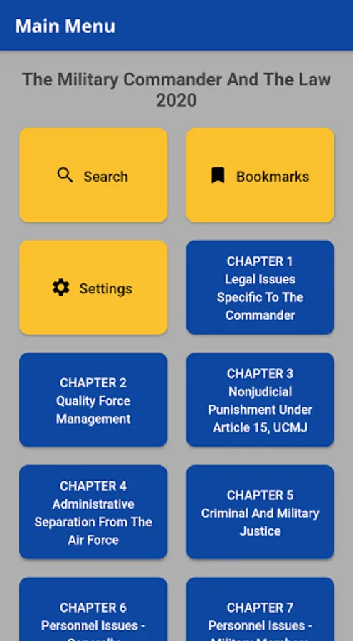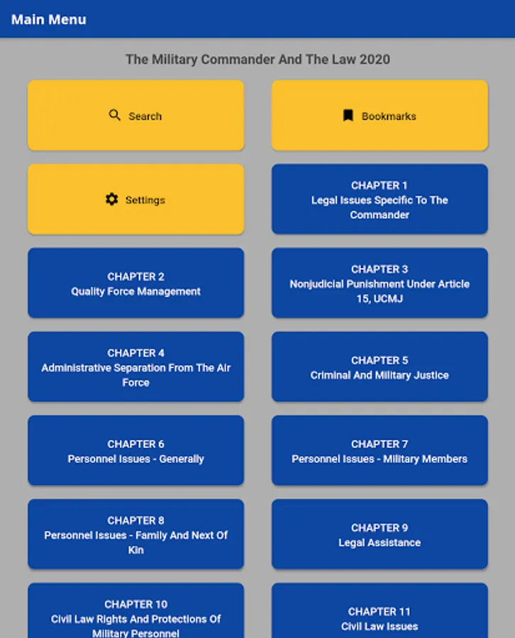 The Military Commander and The Law 2020 is a book used by various courses at Air University and serves as a helpful reference guide for commanders in the field. The book has been converted into an app which includes bookmarking and search features.