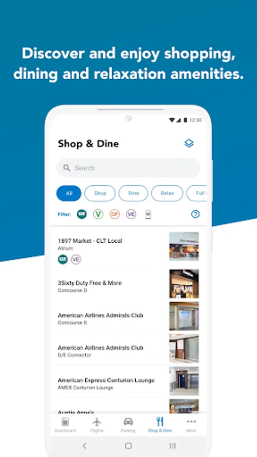 The Charlotte Douglas International Airport app makes your travel experience through CLT easier than ever before. Created with all phases of your journey in mind, the app gives you instant access to all the information you need during every step of your trip, from preparing for travel to boarding your flight.