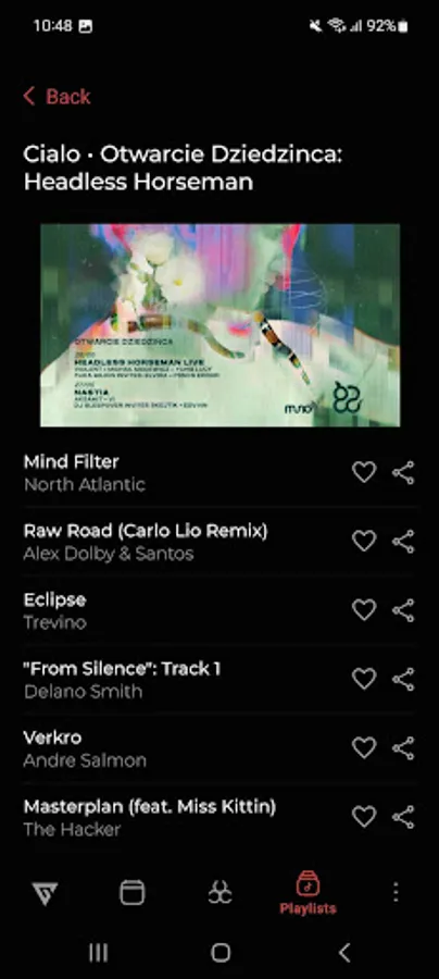 - Playlists - Become part of the community by collectively creating playlists from each event.
