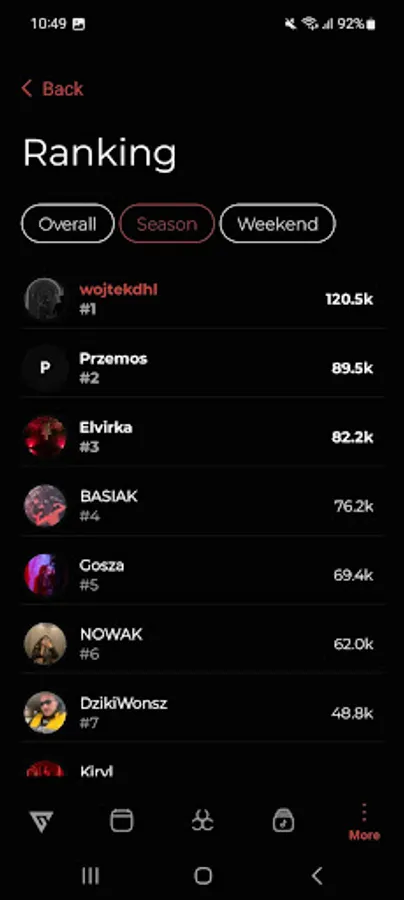 - Ranking of dancers - The app counts the steps danced in the club and creates a set of the best ravers.