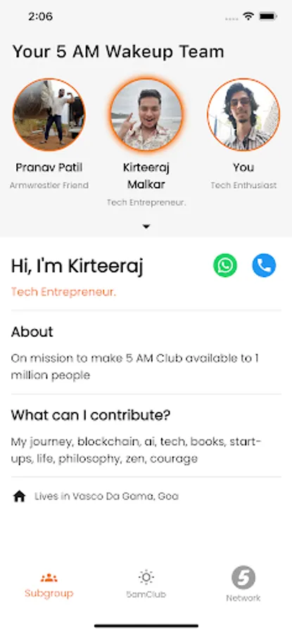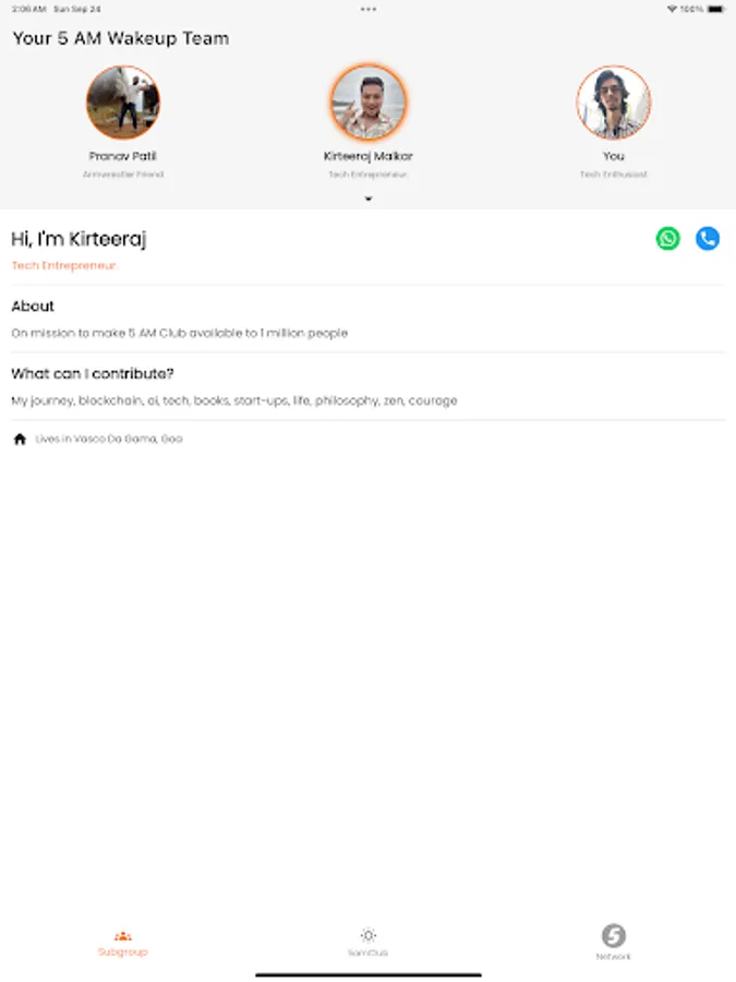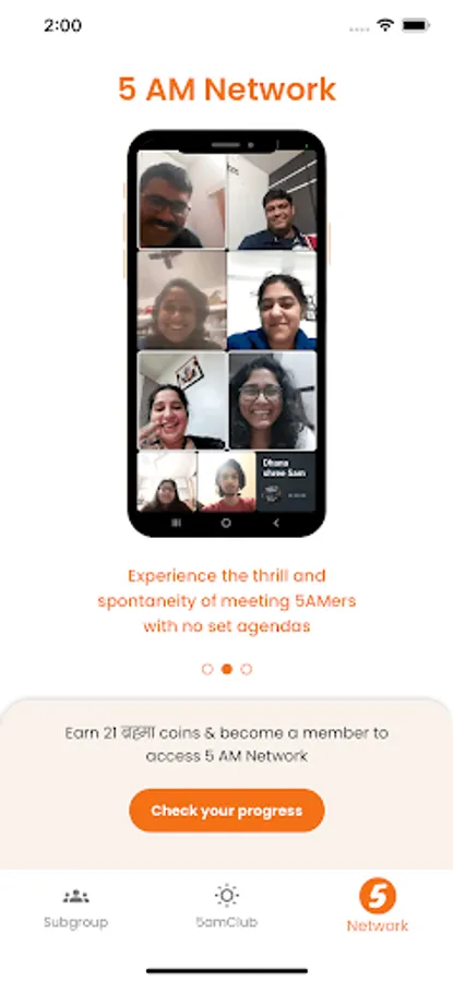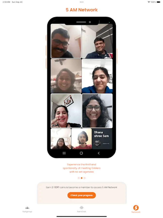 Introducing the 5 AM Club App, the world's first global community app that helps you wake up at 5 AM with the support of peers from around the world. With our app, you'll get to connect with two new people every day who are also part of the 5 AM Club, and you can ask for wake-up support from each other.