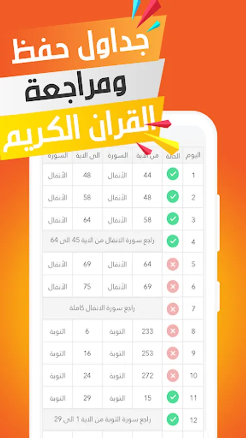 - schedule for memorize and learning Quran, according to your level, time, and goal. You can choose how many pages or parts you want to learn every day, week, or month.