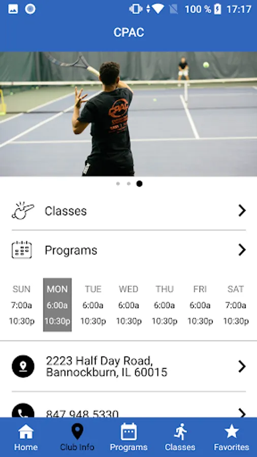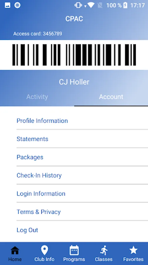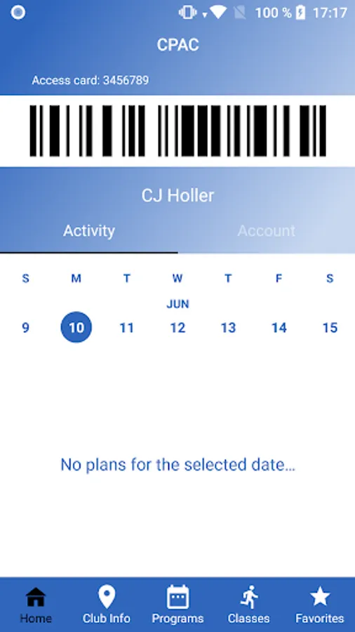 Download the app to view basic information about the facility, view your membership card, and search for programs and classes.