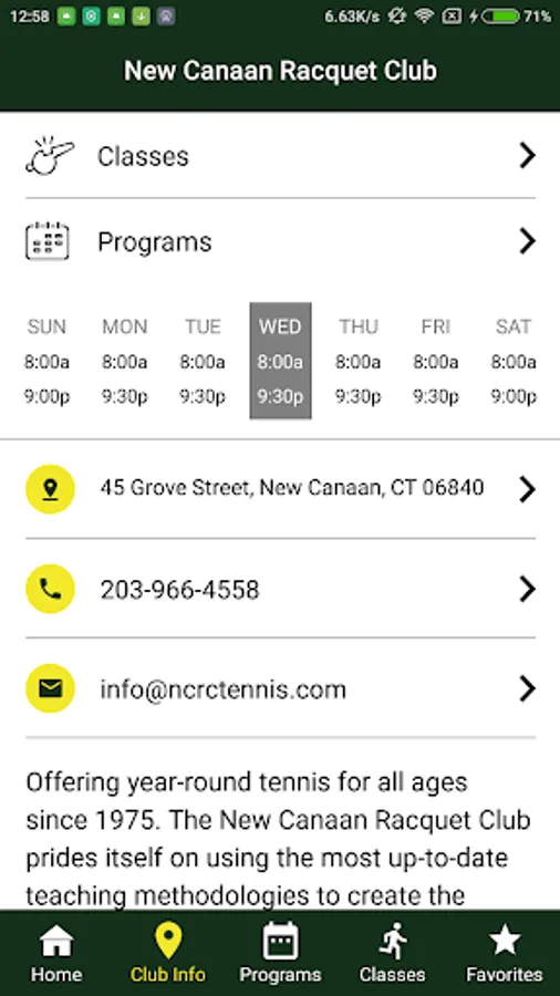 Offering year round tennis for all ages since 1975. The New Canaan Racquet Club prides itself on using the most up-to-date teaching methodologies to create the champions of tomorrow. We implement the latest technology to better allow customers the ease of access at their fingertips.