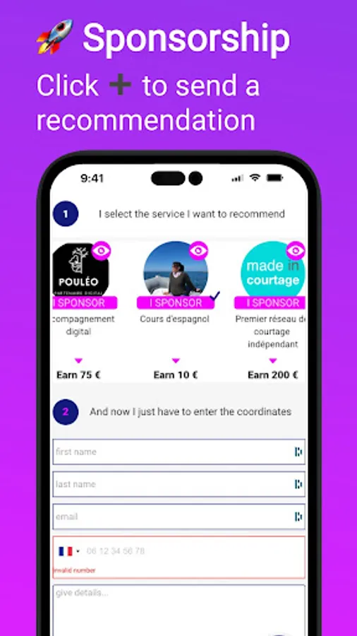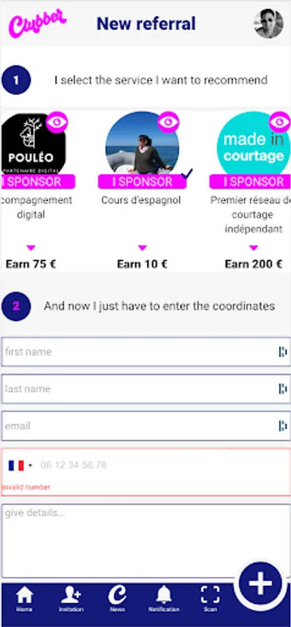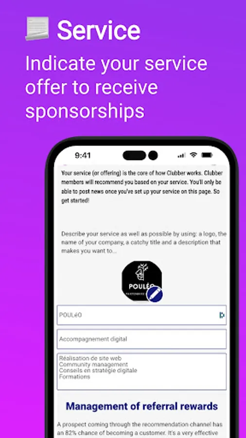 To do this, you just need to create the professional service you offer and invite your clients, your professional network and your friends to your Clubb. They will have direct access to the interface to send you referrals.