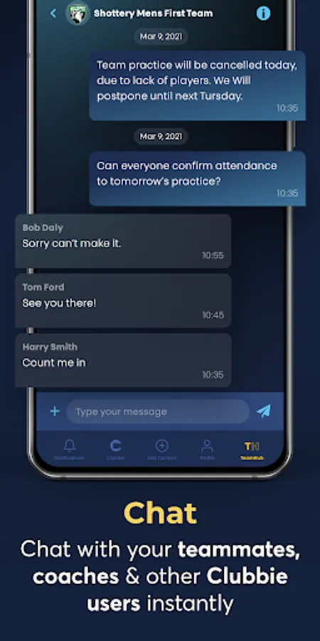 Connect with new clubs, opponents & sponsors within the CLUBBIE community and chat with friends & teammates at a click of a button!