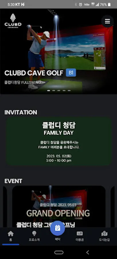 - You can check your reservation schedule and vouchers at a glance, along with current events, promotions, professional golfers and bay introductions.